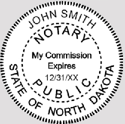 Prior to purchasing a notary stamp, a notary must receive a certificate of authorization from the Secretary of State. The seal can “be...a circular design stamp or a rectangular design stamp...and be surrounded by a border”. A North Dakota notary who performs a notarial act involving a tangible record must affix an official seal to each notarial certificate at the time of notarization.